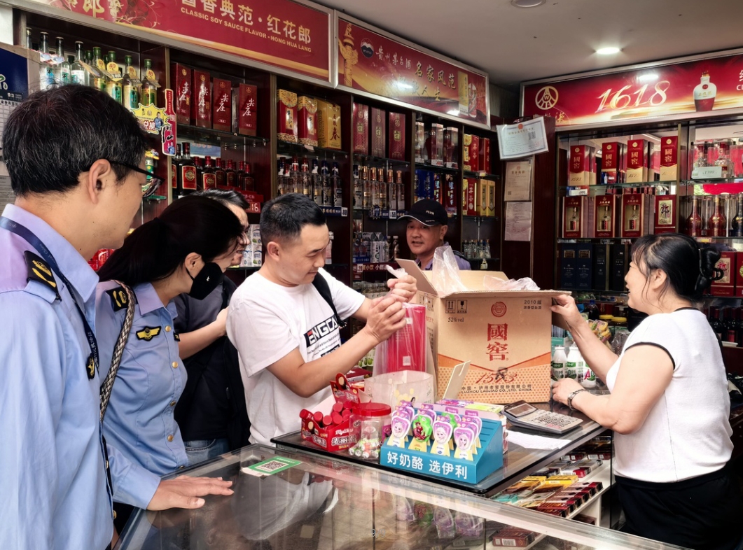 6月10日,为深入实施知识产权强国建设纲要,护航酒企“老字号”创新发展,甘洛县市场监管局联合泸州老窖、五粮液、剑南春、舍得四家酒企打假工作人员,在县城内开展川渝“老字号”知识产权行政保护专项检查。