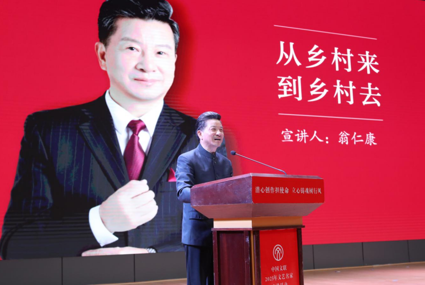 绍兴莲花落表演艺术家翁仁康以“从乡村来,到乡村去”为主线,讲述了自己五十余年坚守基层、服务农民的艺术历程。他坦言:“我的舞台在乡村,我的老师是农民”,并坚持每年演出百余场,将老百姓的真实生活融入国家级非遗“绍兴莲花落”中。为推动传统曲艺创新发展,他在保留乡土韵味的基础上尝试普通话演绎,让莲花落既保留“泥土香”,也能“出远门”。翁仁康强调百善孝为先,认为在城乡融合背景下,文艺工作者肩负着文化精神融合的重任,只有服务好老百姓,传递正能量,歌唱新时代,才能实现良性循环。
