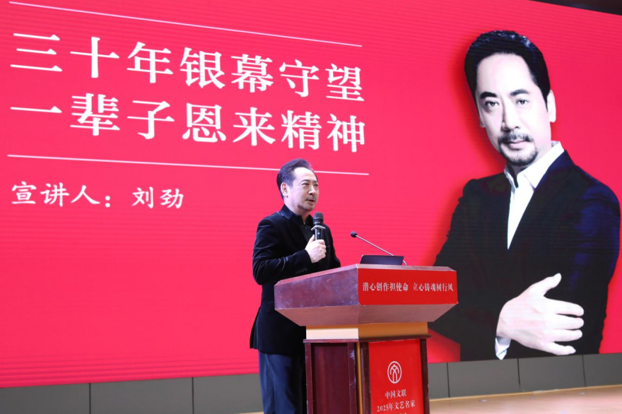 演员刘劲则以“三十年银幕守望,一辈子恩来精神”为主题,深情回顾了塑造周恩来总理银幕形象的艺术求索与精神洗礼。从青年时期立志从艺,到经历艰苦岁月仍坚守理想,他始终秉持“以情动人”的创作理念,通过反复研读史料、走访亲历者,从细节中捕捉人物的神韵,力求呈现一个“生动鲜活、带着气息”的周恩来。他指出,真正的主旋律作品应展现真实的人性温度,而塑造周总理角色的过程,不仅是艺术上的修行,更是精神的深刻洗礼。他表示将继续讲好周恩来的故事,传播党的方针政策,引导观众从历史中汲取力量。