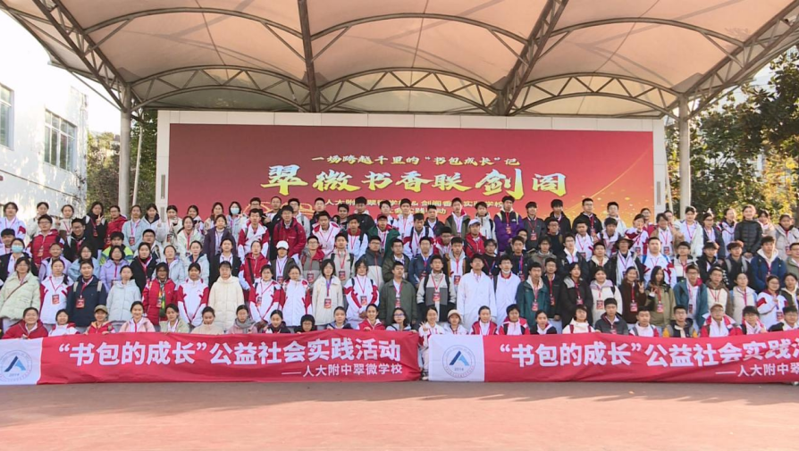 近日,中国人民大学附属中学翠微学校200余名高一师生围绕“书包的成长”这一主题,走进剑阁县香江实验学校与剑门关高级中学,通过“授课互动+跨校共学”的创新模式,开启了一场贯穿小学与高中阶段的公益教育实践活动,以实际行动诠释了教育公益的温度与力量。