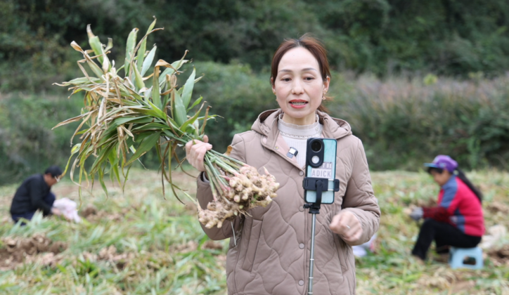 今年,秀钟乡生姜种植面积近千亩,大部分已采收并销售或贮藏。然而,由于市场价格走低,部分生姜迟迟未能售出。为破解这一难题,当地政府主动组织网络达人深入生姜种植基地,开展现场直播,将新鲜出土的生姜直观呈现给全国网友,开辟了一条从田间直达消费者的新销路。